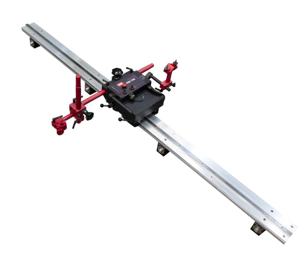 Valovirtakäyttöinen kiskokuljetin mekanisoituun hitsaukseen tai termiseen leikkaukseen. Kuljetin voi kulkea suoraviivaisesti (jalko-, vaaka- ja pystyasento) levyillä tai lieriöpinnoilla erilaisten ohjauskiskojen avulla. Kiskoja on saatavilla suorina, taipuisina (min. r = 5 m) ja putkille valmiiksi taivutettuina sarjoina (Ø 200 – 3000 mm). Kysy räätälöityjä kokoja myyjältä!