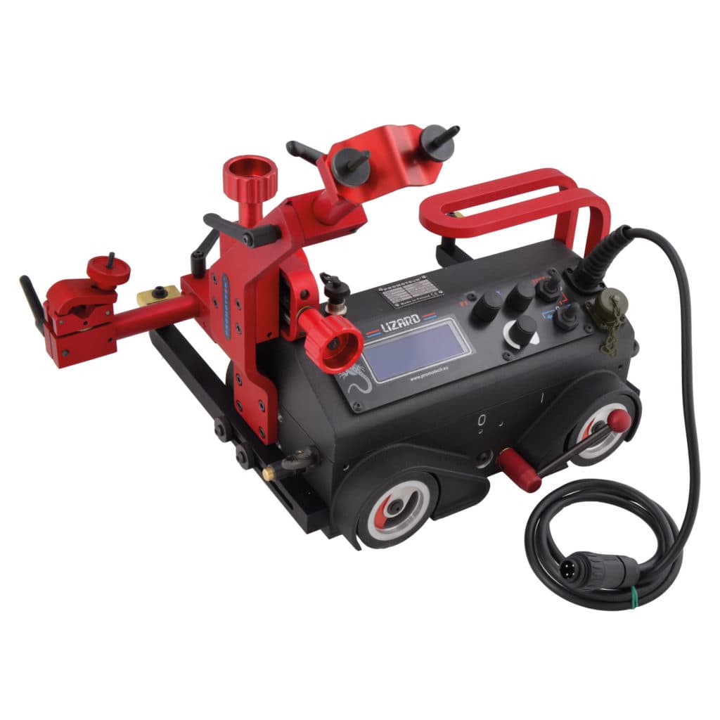 Piena-ja päittäisliitoksiin, nelipyöräinen. Lisävarusteita runsaasti mm. taipuisa kisko vaakahitsaukseen.