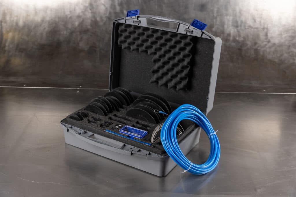 Täydellinen flex- juurikaasutustulppasarja sisältää lujan kuljetus/säilytyssalkun, väliputken 1kpl, 12m ruostumattoman teräsvaijerin ja 12m pitkän argonletkun naarasliittimellä. Sarjassa on 11 paria tiivistekiekkoja putken sisähalkaisija-alueella 25-165mm. Runko-osan pituus on 200mm.