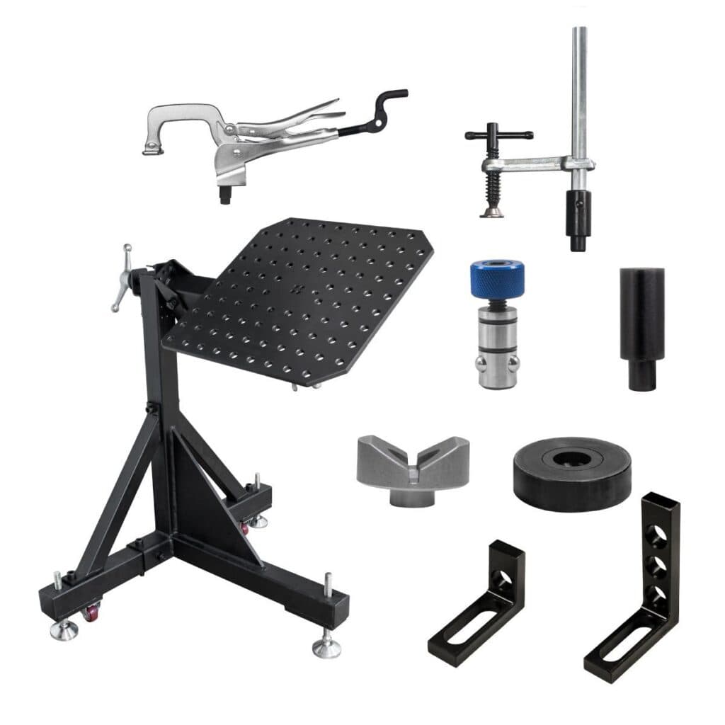 Tasapainopöydässä on kaksi pyörivää akselia ja kallistusakseli, joiden avulla työkappale saadaan asetettua mahdollisimman ihanteelliseen asentoon.